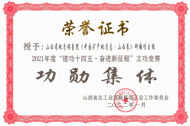 日前,地調(diào)院有限公司獲得山西省總工會直屬基層“2021年度‘建功十四五·奮進(jìn)新征程’立功競賽”“功勛集體”榮譽稱號。