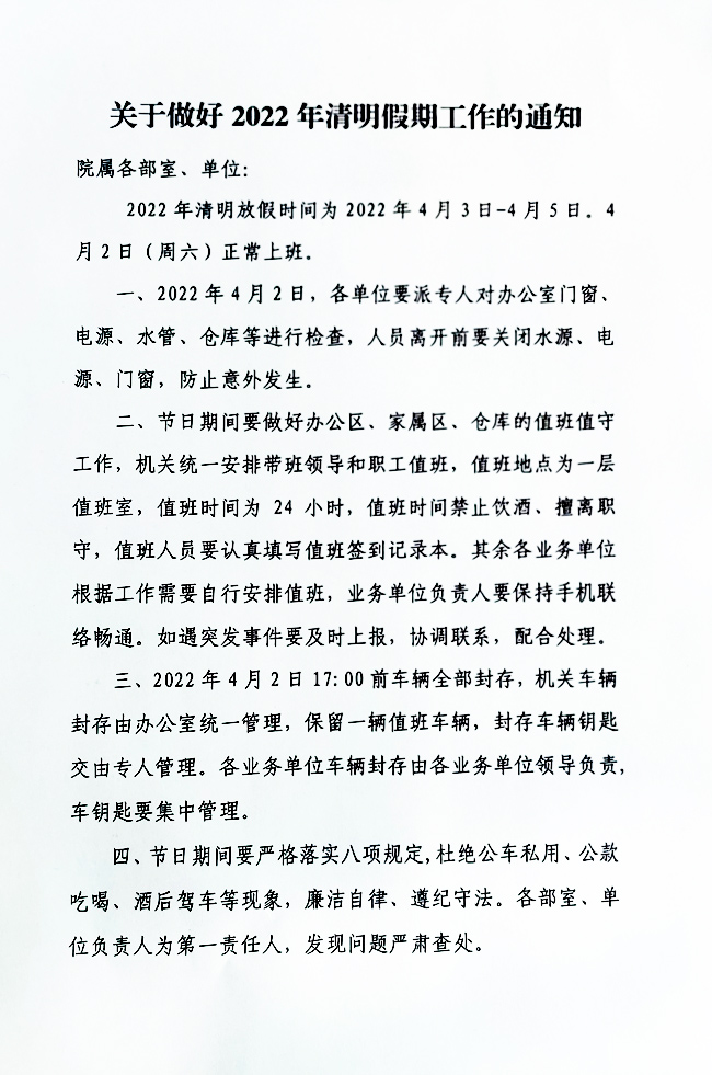 關(guān)于做好2022年清明假期工作的通知