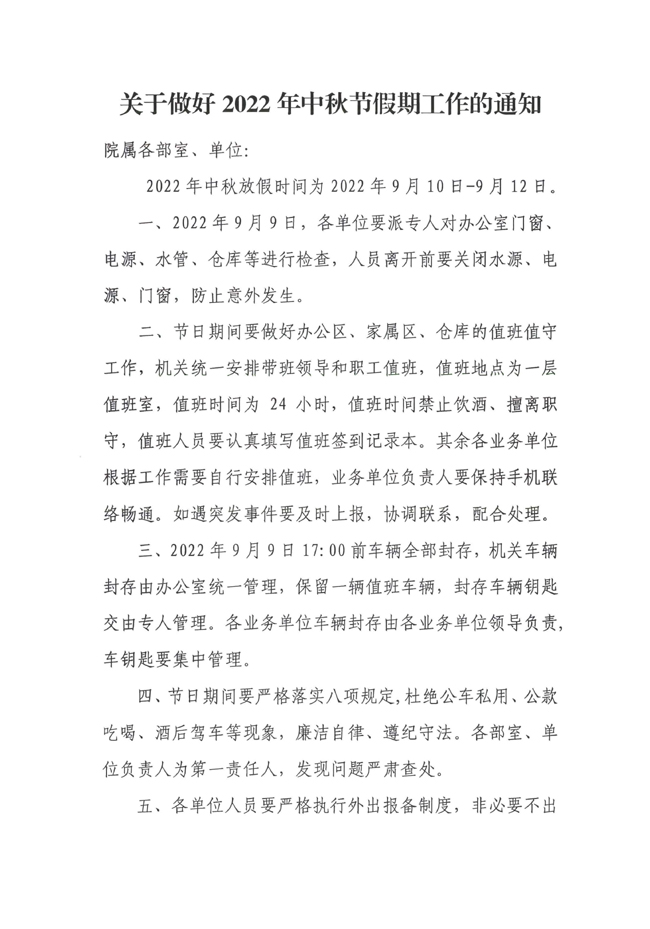 關(guān)于做好2022年中秋節(jié)假期工作的通知