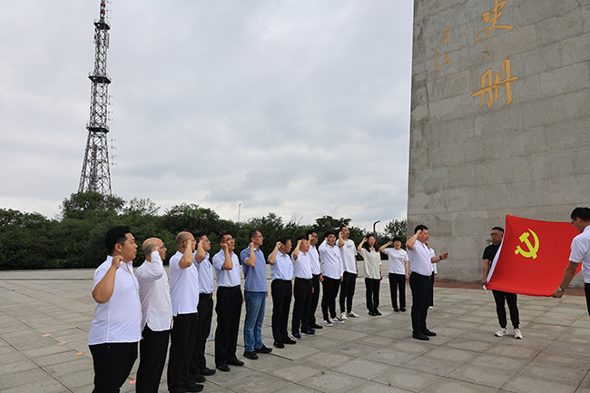 重溫入黨誓詞,牢記黨員身份。參觀結(jié)束后,在支部書記黃虎城同志的帶領(lǐng)下,全體黨員在百團(tuán)大戰(zhàn)紀(jì)念碑前,面向鮮紅的黨旗集體宣誓,再次接受入黨誓詞的洗禮,進(jìn)一步堅(jiān)定理想信念,不忘共產(chǎn)黨員的初心使命。