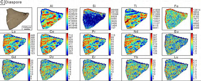 研究明確了稀土的主要 “藏身之處”—— 硬水鋁石。分析顯示,這種礦物中的稀土含量遠超其他礦物,最高可達 11666ppm,其承載的稀土總量占鋁土礦總稀土的 75% 以上,是稀土的主要宿主礦物。